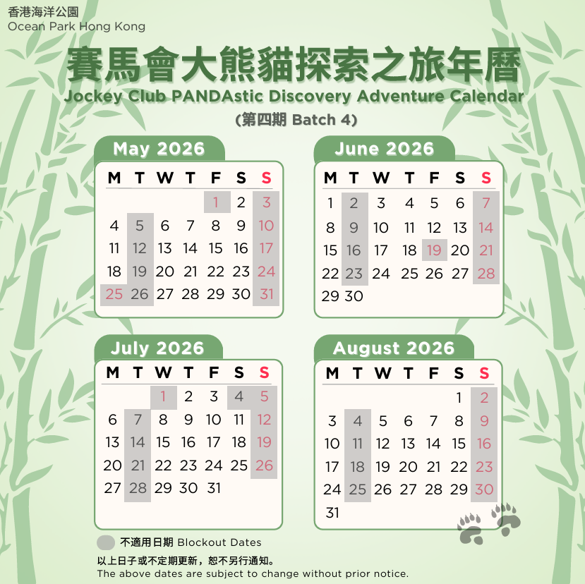 | Visiting Date | May to August 2026 (Final Batch!) Jockey Club PANDAstic Discovery Adventure Calendar